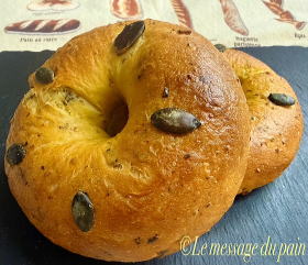 ベーグル・オ・ポティロン ![]() 栄養価の高いかぼちゃ入りの ベーグルです クラストの香りも良いので ハード系パンがお好きな方にも お薦めの1品 |