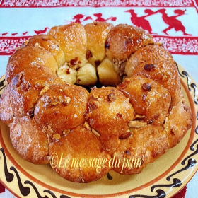 トレス・オ・ザモンド![]() 三つ編み成形の ヴィエノワズリに カリカリと香ばしい ナッツのアパレイユをのせた 魅惑的なパン |