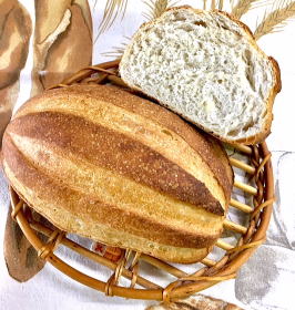 バタール・アンテグラル![]() 全粒粉などを入れた 風味豊かなバゲット生地を 太めのバタールに仕上げます ※写真の物よりもう少し 細い成形となります |